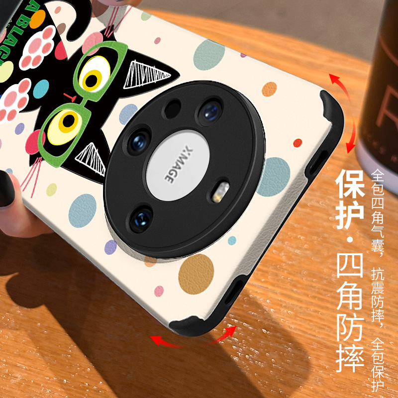 彩色波点猫现在适用华为mate60Pro手机壳硅胶Mate40保护套可爱30epro+超薄小众全包防摔40e创意mt50por新款女