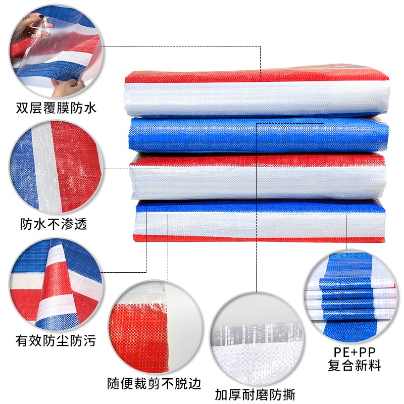三色彩条布防水防晒加厚工地装修一次性防尘布红白蓝防雨布篷帆布