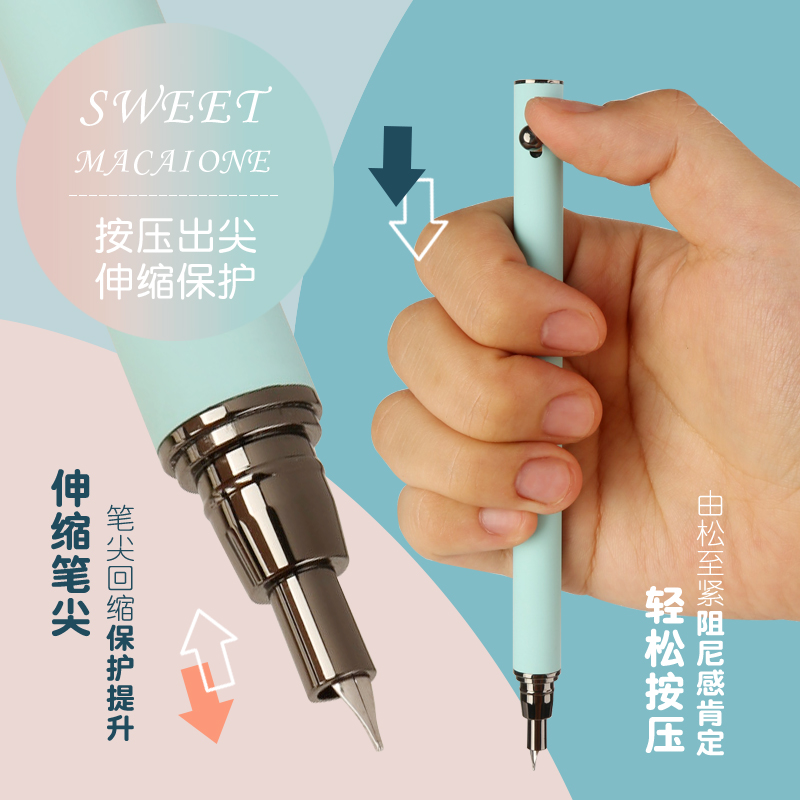 烂笔头按动钢笔3092金属按压式出尖跳动钢笔三年级小学生用可换墨囊练字书法抖音同款成人签字男女孩特细0.38