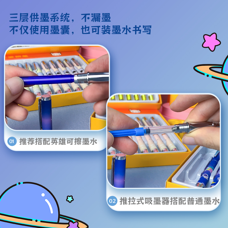 英雄热敏可擦钢笔可爱渐变色小学生专用三年级卡通正姿墨囊练字笔