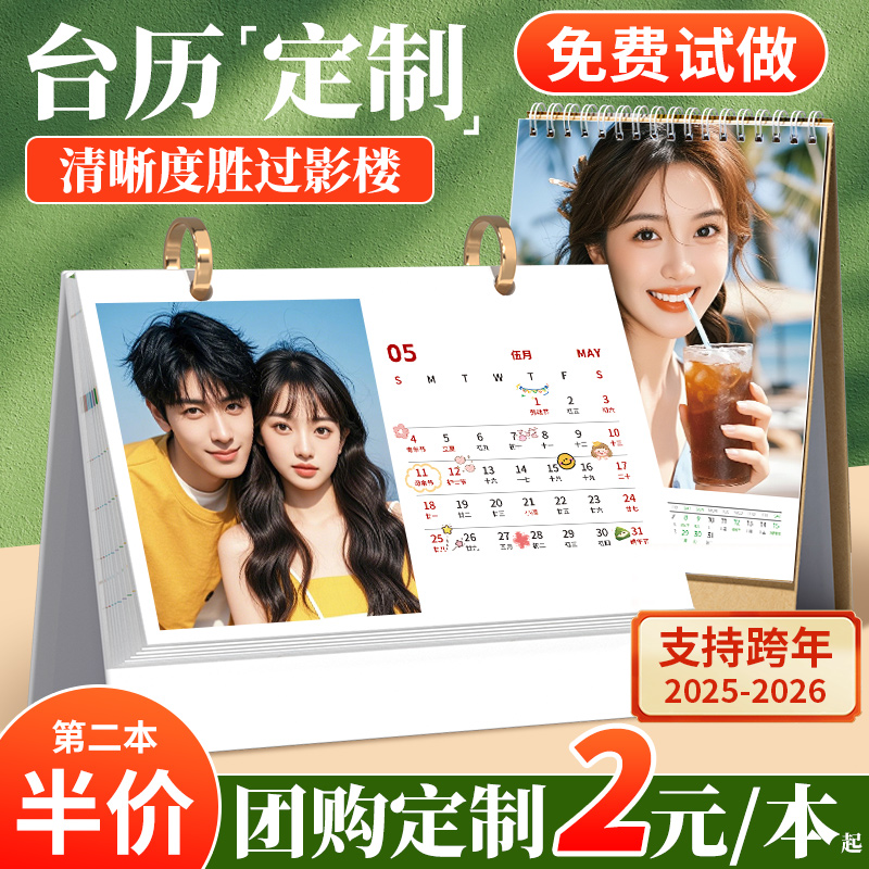 2026年台历定制照片来图定制日历制作新款马年月历手机照片定做订制桌面宝宝情侣合影家庭韩系创意自制diy