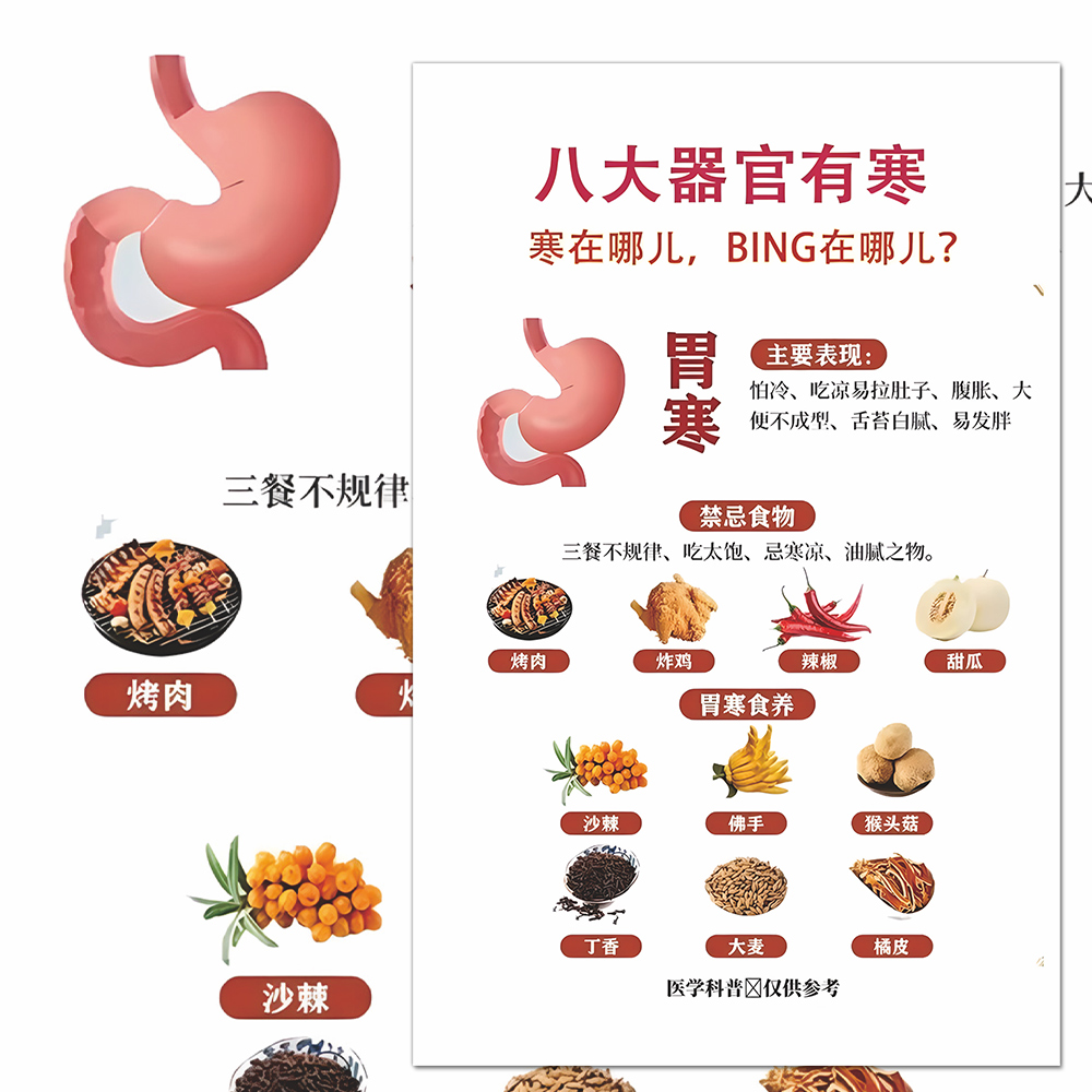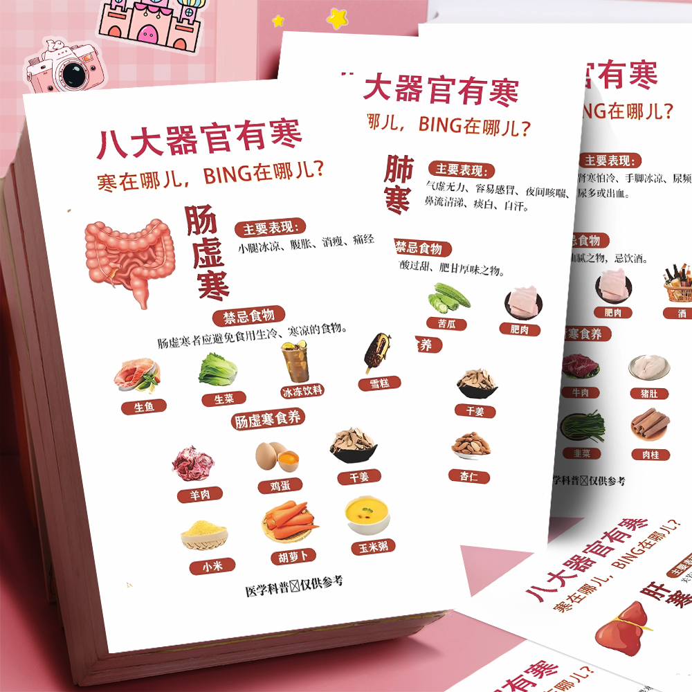 八大器官寒气五脏六腑症状自查中医养生食疗驱寒食谱高清贴画