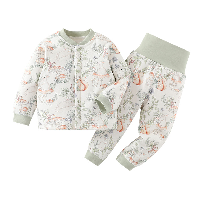 婴儿分体套装60克薄棉加棉无骨A类打底内衣对开高腰套一件代发