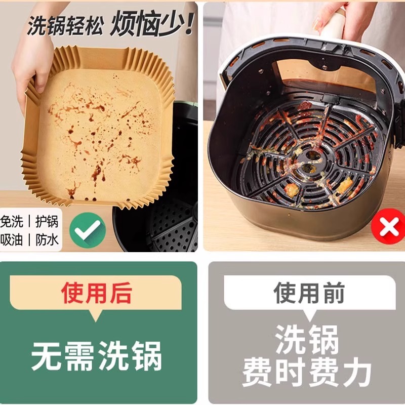 空气炸锅专用纸烤箱吸油垫纸家用食物隔油碗耐高温方形烘焙硅油纸