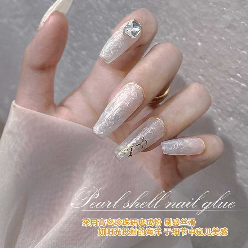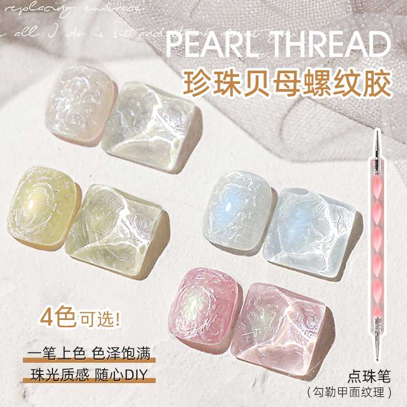 氢能量美甲珍珠白贝母螺纹罐装胶珠光质感珍珠光泽仙气极光细闪胶