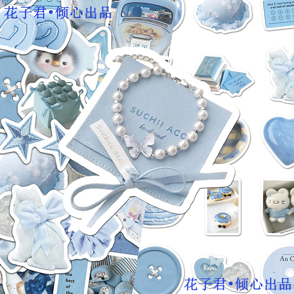 100张韩系淡蓝色小物贴纸ins小清新简约小众装饰贴画diy桌面手账