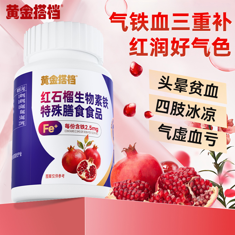 黄金搭档红石榴生物素铁片60片女士贫血手脚冰凉调理气血铁双补