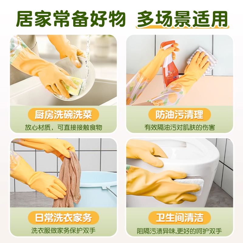 洗碗手套加绒加厚保暖加长男女家务厨房耐用胶皮洗衣清洁橡胶乳胶