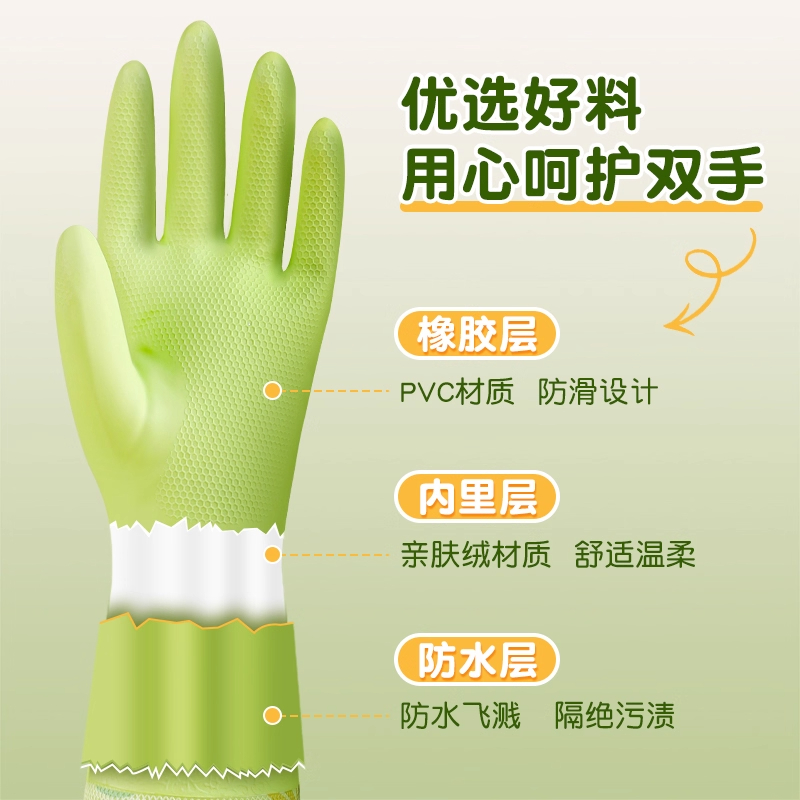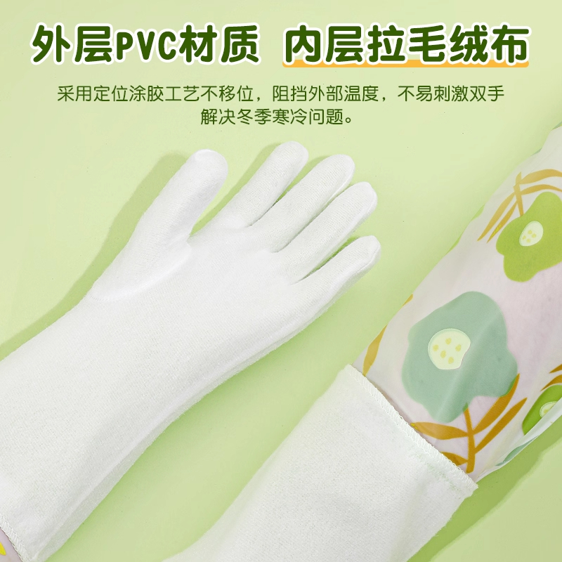 加绒洗碗手套冬季家务厨房耐用型女加厚橡胶乳胶刷碗洗衣清洁手套
