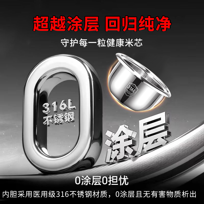 九阳0涂层电饭煲家用多功能电饭锅智能316L不锈钢无涂层内胆30N1