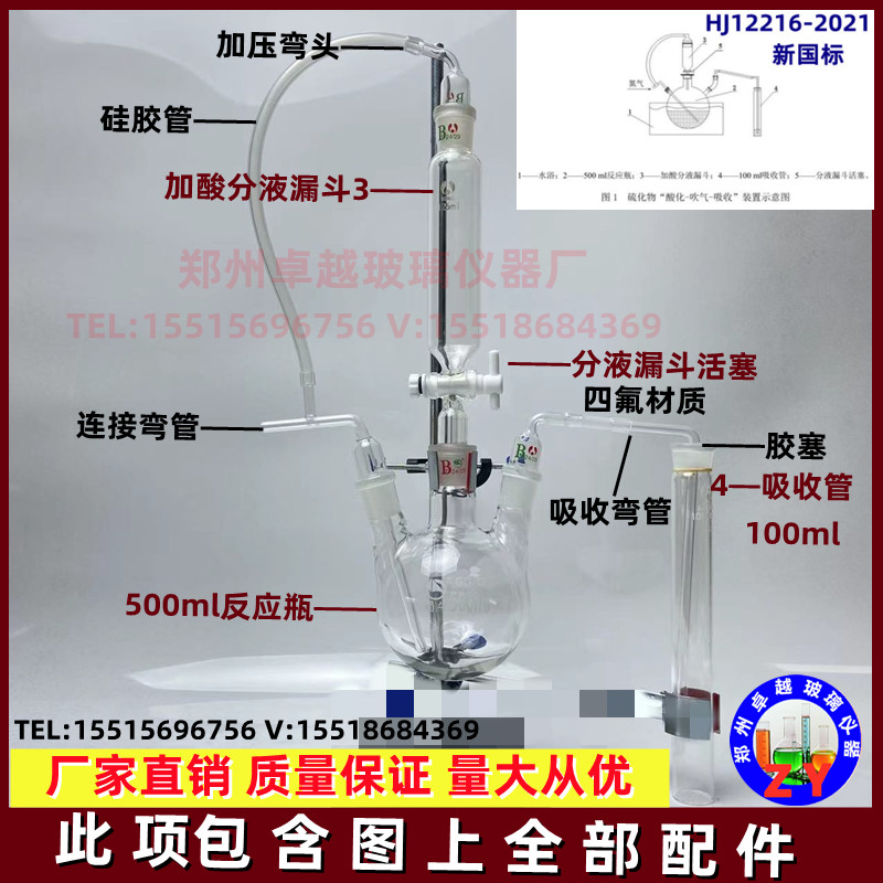 HJ1226-2021硫化物酸化吹气吸收装置测定蒸馏吸收装置亚甲基蓝法
