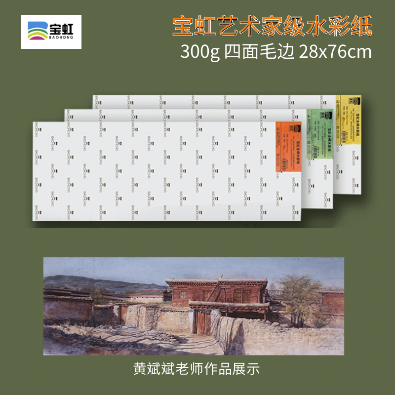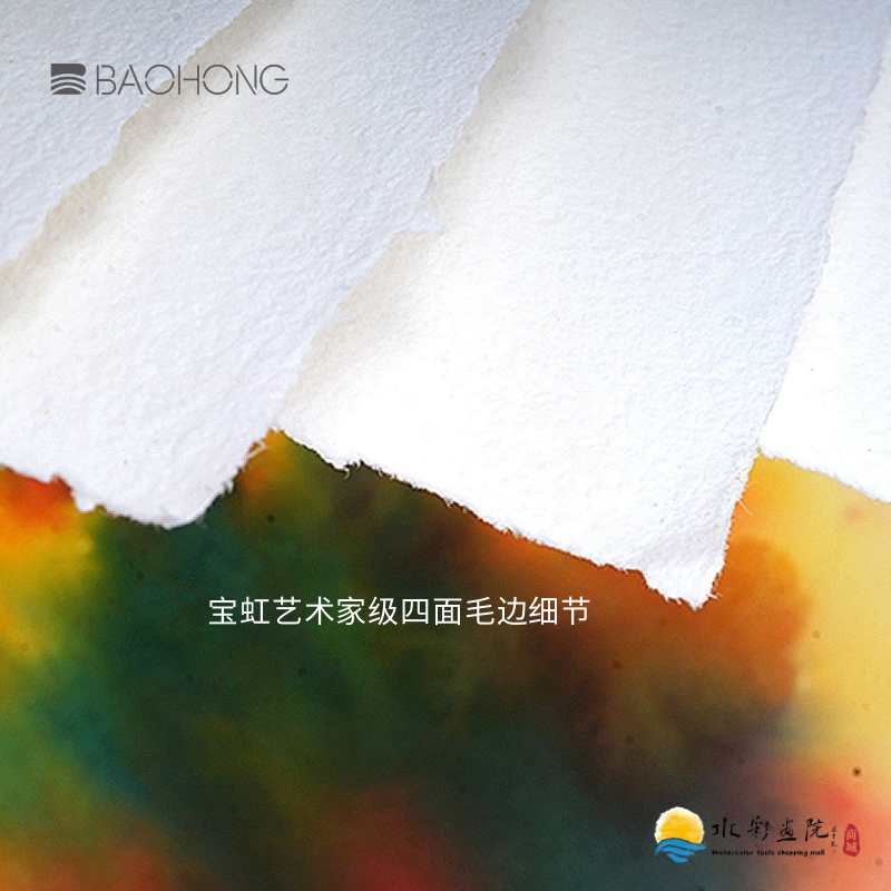 宝虹艺术家级水彩纸300g长方形纯棉浆手工四面毛边无酸水彩绘画纸