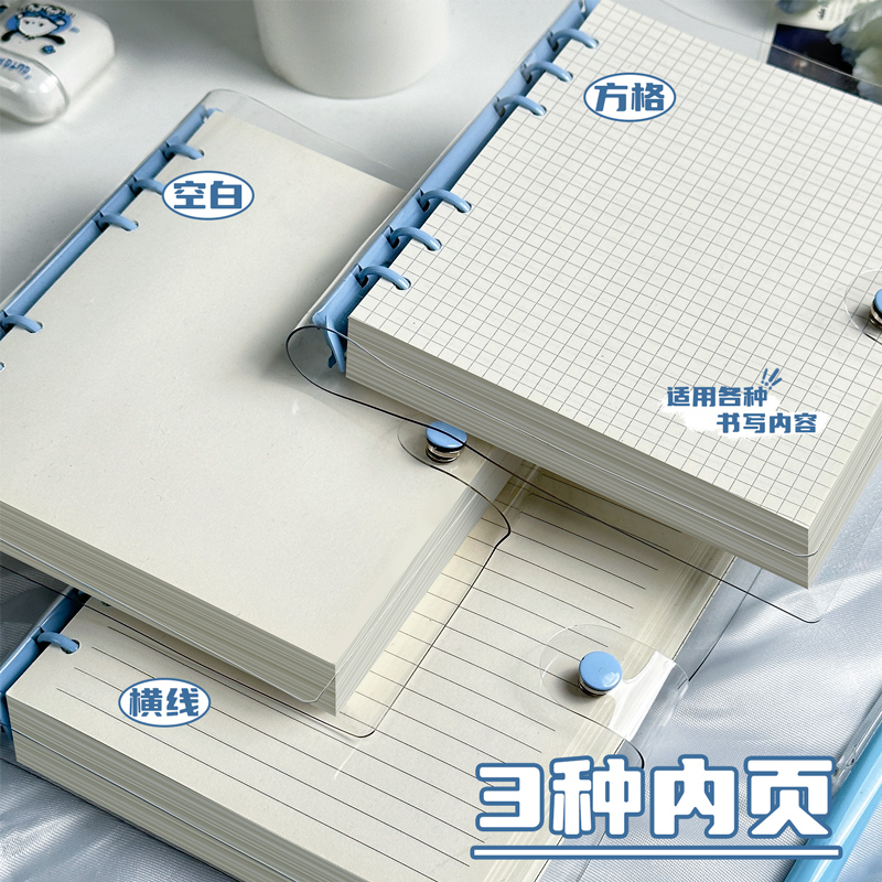 简约方形透明软壳活页笔记本可拆卸扣环加厚高中生大学生考研专用横线活页本素描写生空白本盖章手帐本