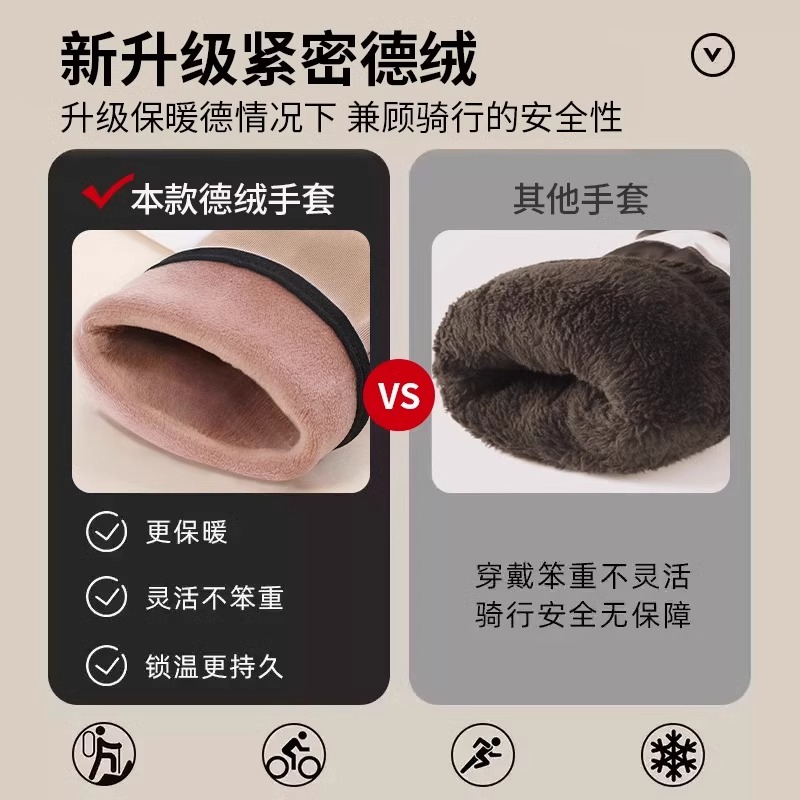 新款冬季保暖手套加绒加厚防寒触屏骑行开车户外运动德绒棉手套