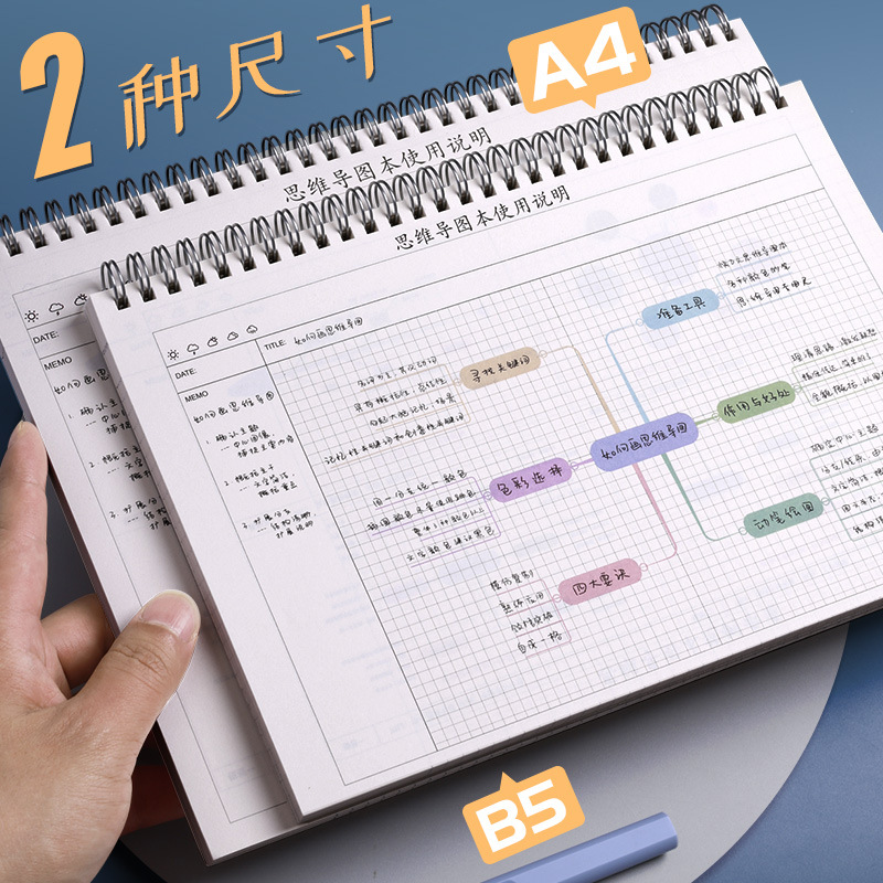 A4线圈本思维导图本子小学生二三年级康奈尔记事本知识架构考试用大学生考研专用本横向笔记本子可拆卸网格纸