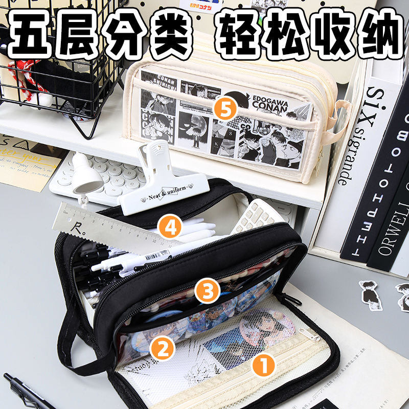 超火i人高颜值痛包2025怪盗基德ins风名侦探柯南笔袋二次元初中男款大容量铅笔盒男孩隐藏痛层文具盒实用双面