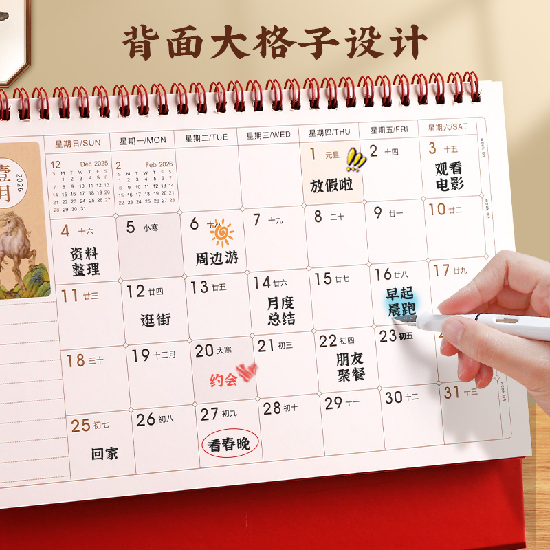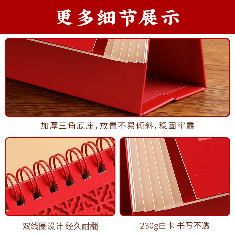 2026年新款中国风喜庆烫金台历创意镂空工艺精美插图日历大格子双线圈月历办公好物摆件加厚底座牢靠定制广告