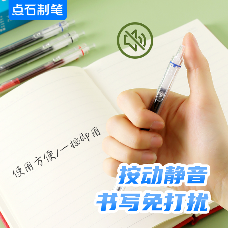 点石911静音按动直液式走珠笔双珠全针管0.5中性笔简约大容量黑笔