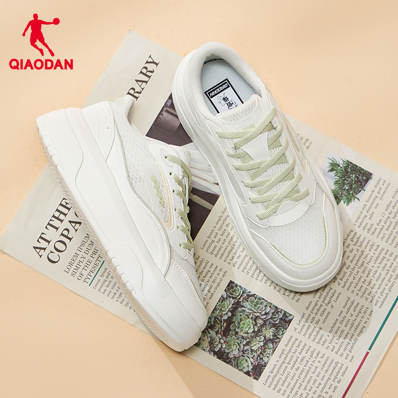 乔丹网面板鞋女子百搭清新绿小白鞋透气厚底增高轻便学生休闲鞋女