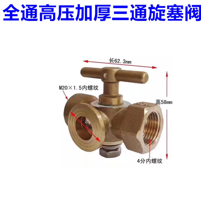 不锈钢全铜高压加厚压力表三通旋塞阀门锅炉蒸汽泄压考克DN15/4分