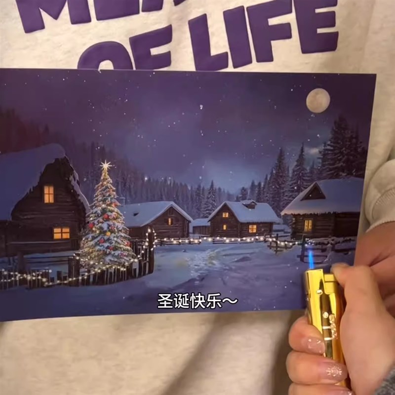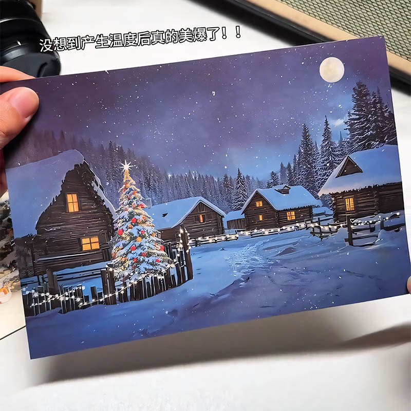 现货速发创意温变圣诞贺卡明信片立体可以点燃的圣诞树圣诞节礼物