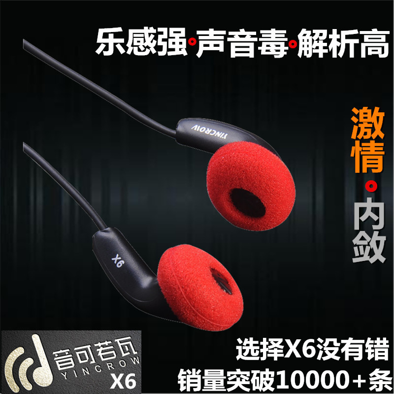 音可若瓦/yincrow X6平头耳塞发烧耳机手机带麦hifi睡觉塞非MX500