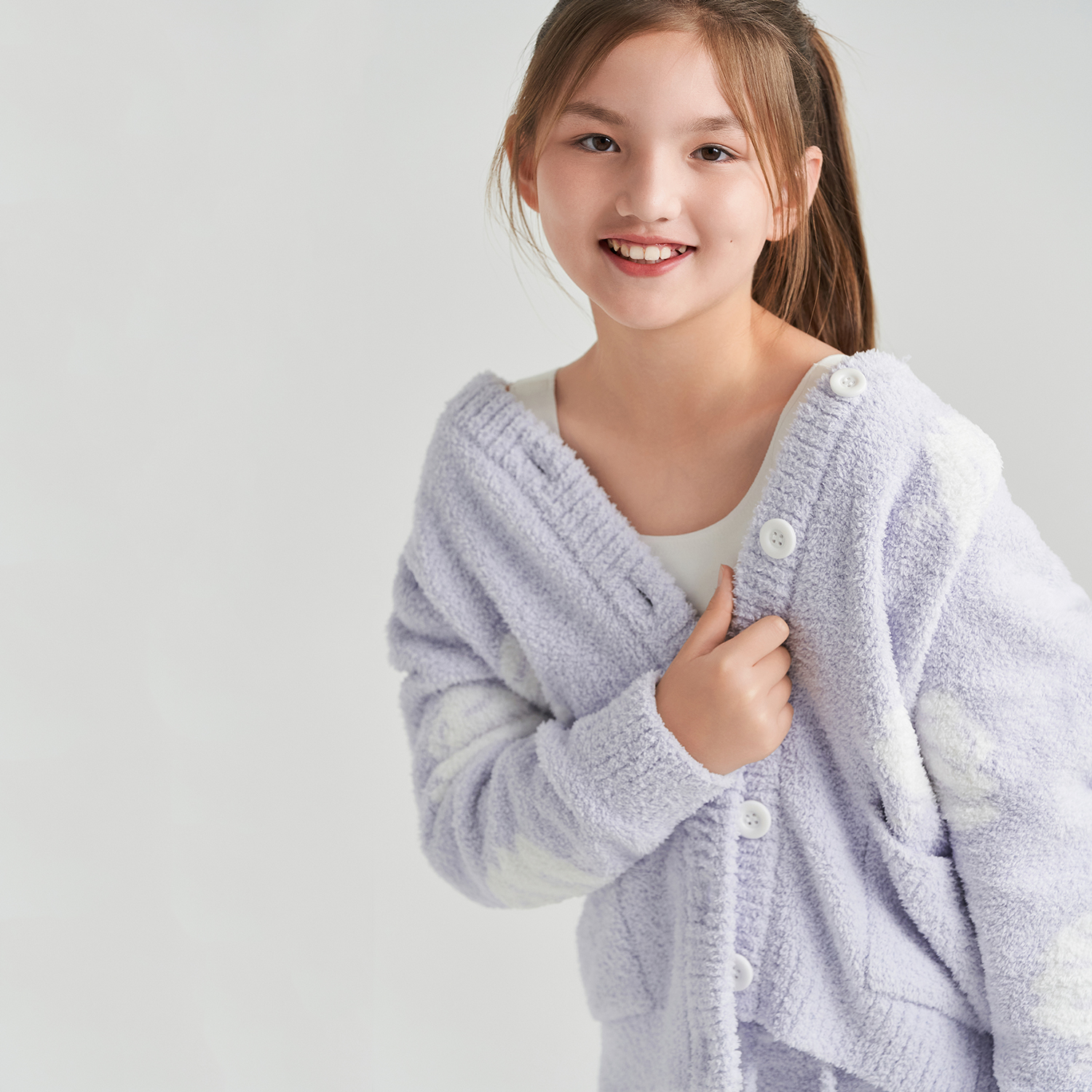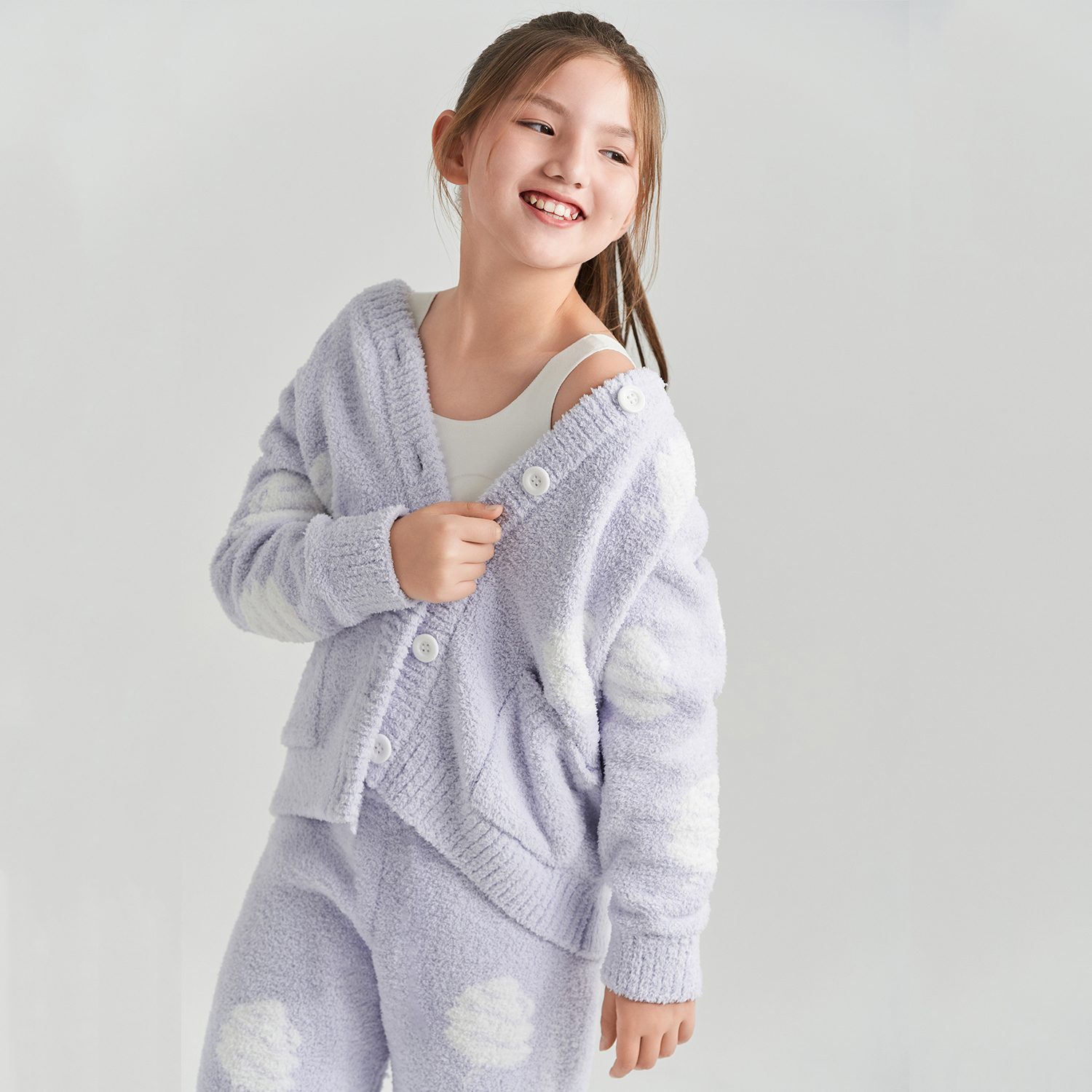爱慕少女睡衣初高中学生少女长袖开衫半边绒家居套装抗静电