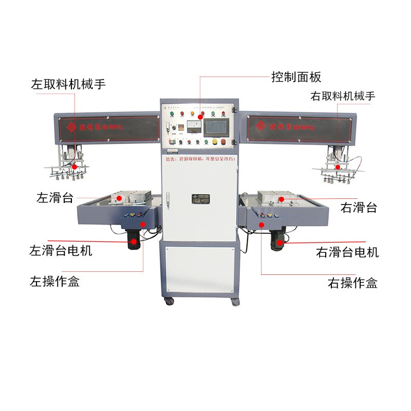 双工位PVC/PETG塑料壳纸板包装热合机滑台式机械手取料高频焊接机