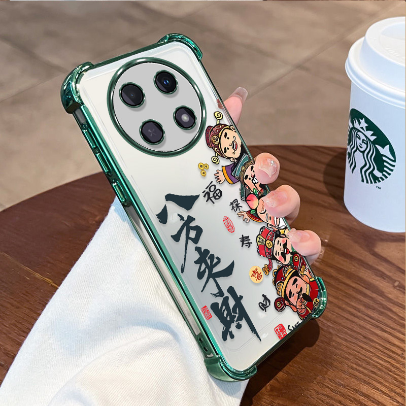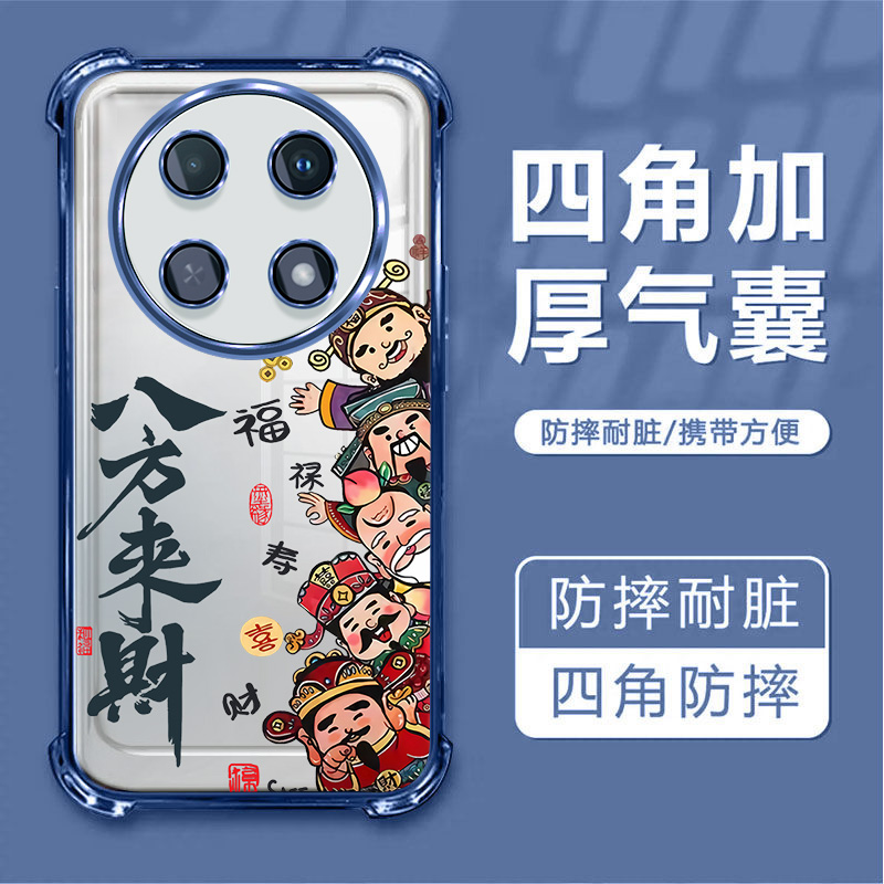 适用于华为畅享70Pro手机壳新年款畅享70x八方来财四角防摔畅想X70财神电镀保护套畅想70Pro硅胶软壳透明外壳