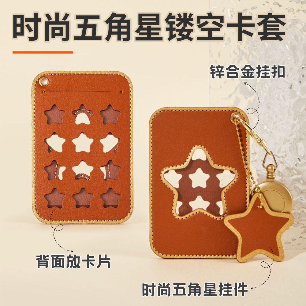 五芒星伸缩挂扣证件卡套皮质工牌胸牌学生校卡饭卡公交卡保护套