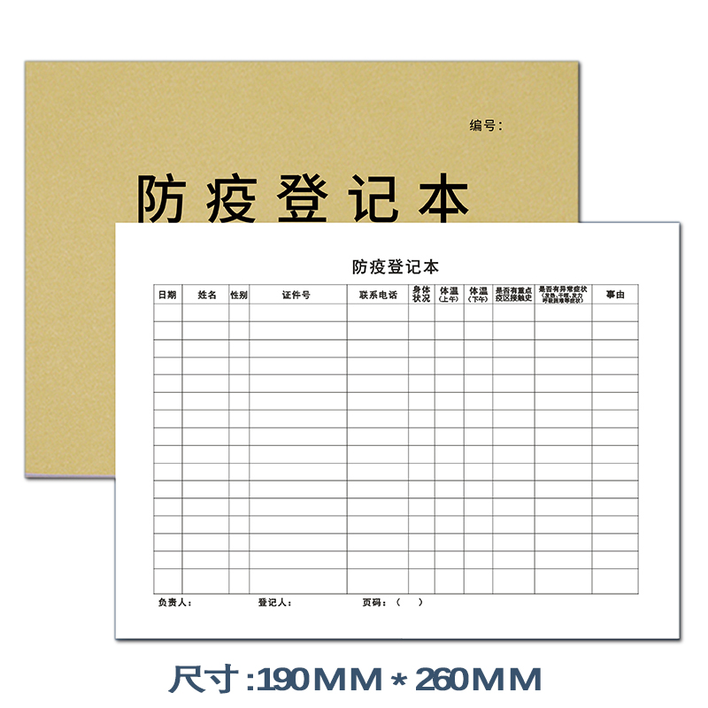疫情防疫登记本体温测量记录本员工学生旅客住宿进出人员客人顾客企业单位公司复工每日外来访人员健康登记表