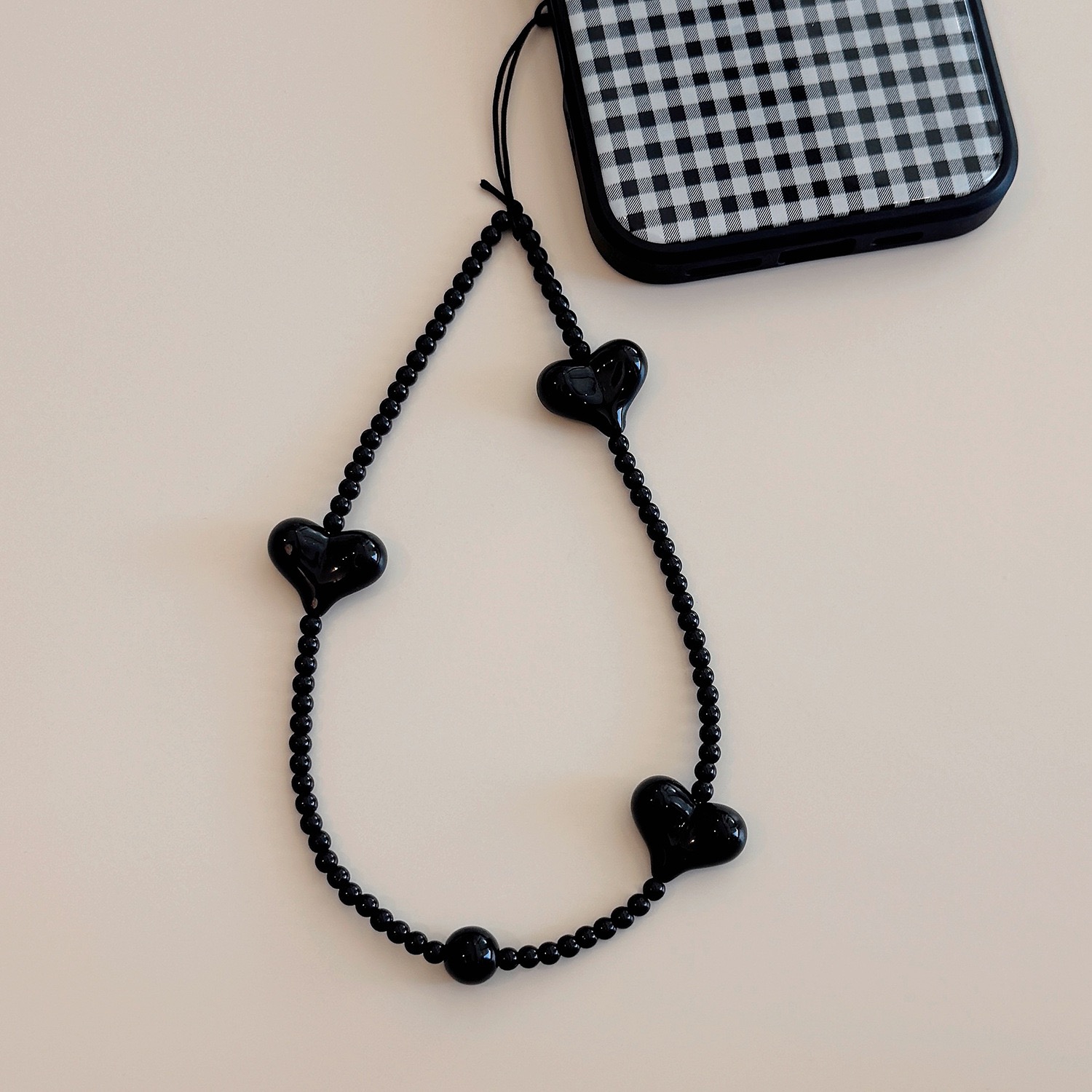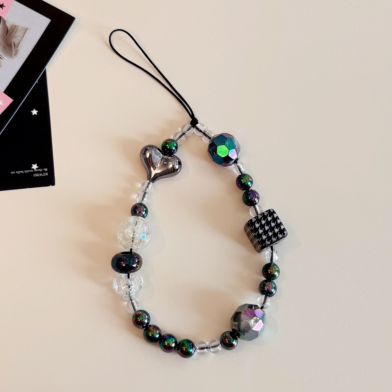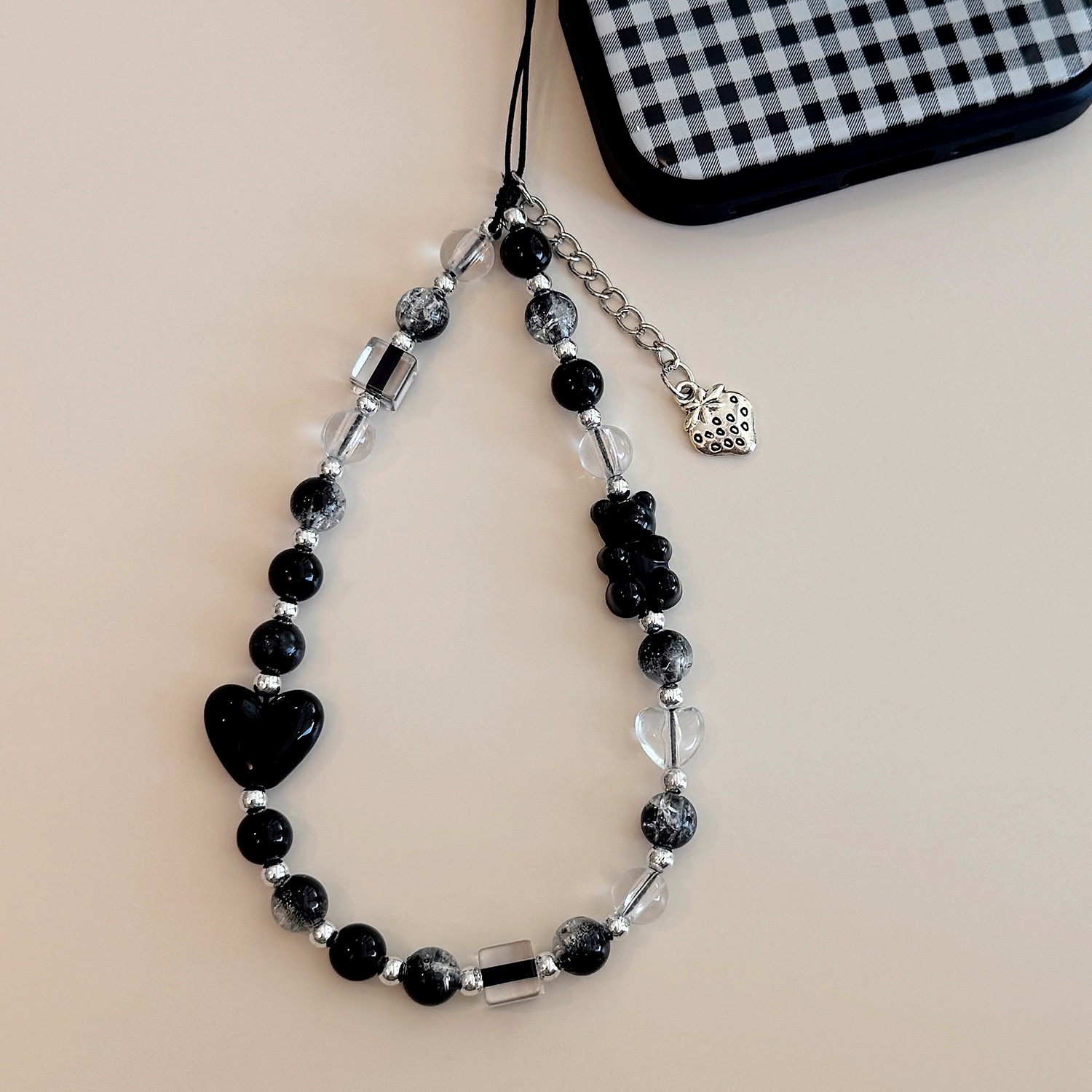 黑粉色串珠手机链配件装饰挂饰百搭甜酷个性挂绳链条韩系包包挂件