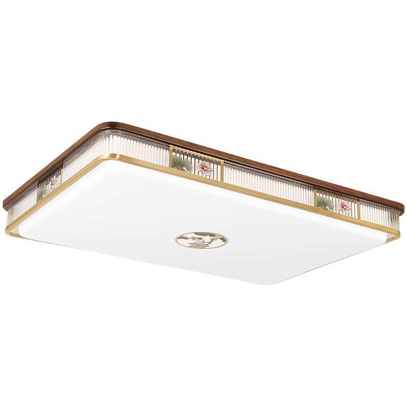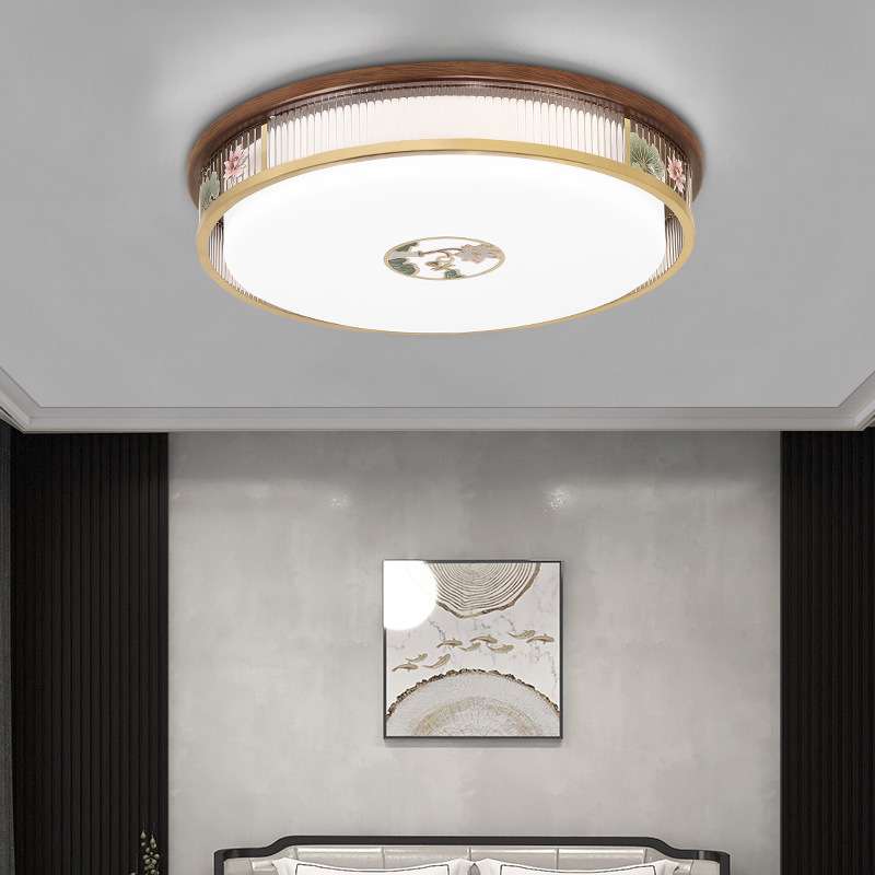 新中式吸顶灯全铜简约客厅灯中国风别墅乌檀实木餐厅卧室灯具