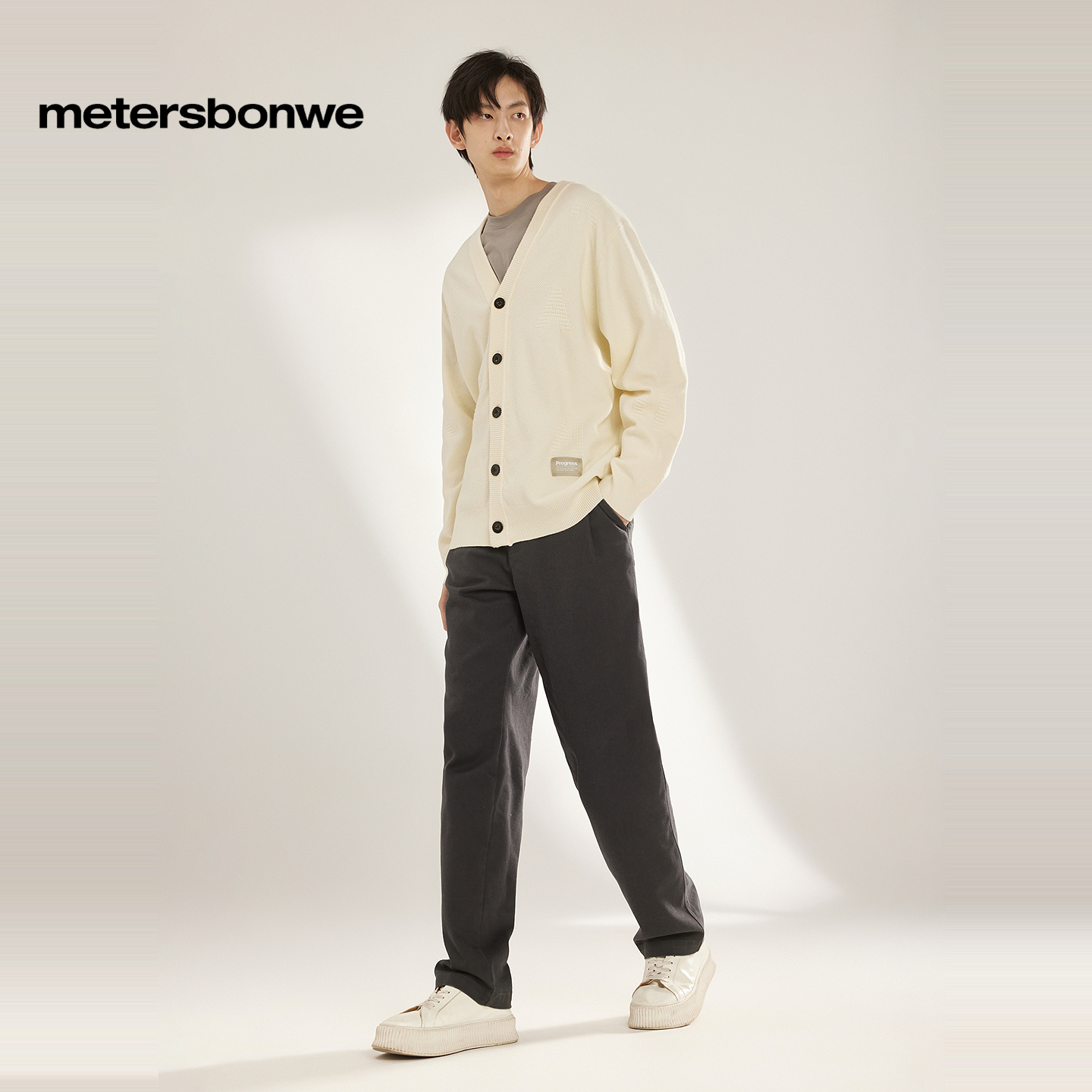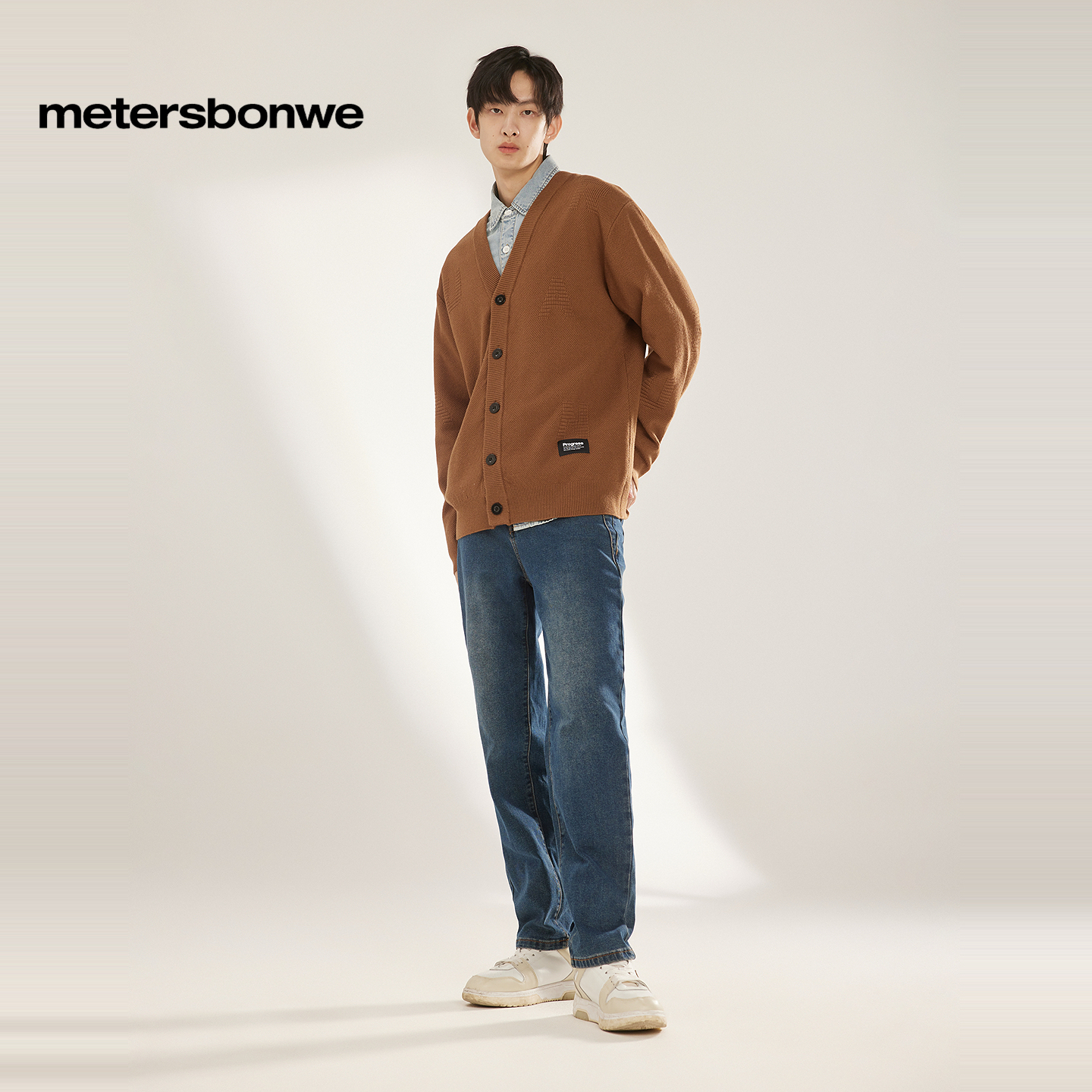 美特斯邦威毛衣男士秋冬季节基本通勤字母提花开衫毛衫