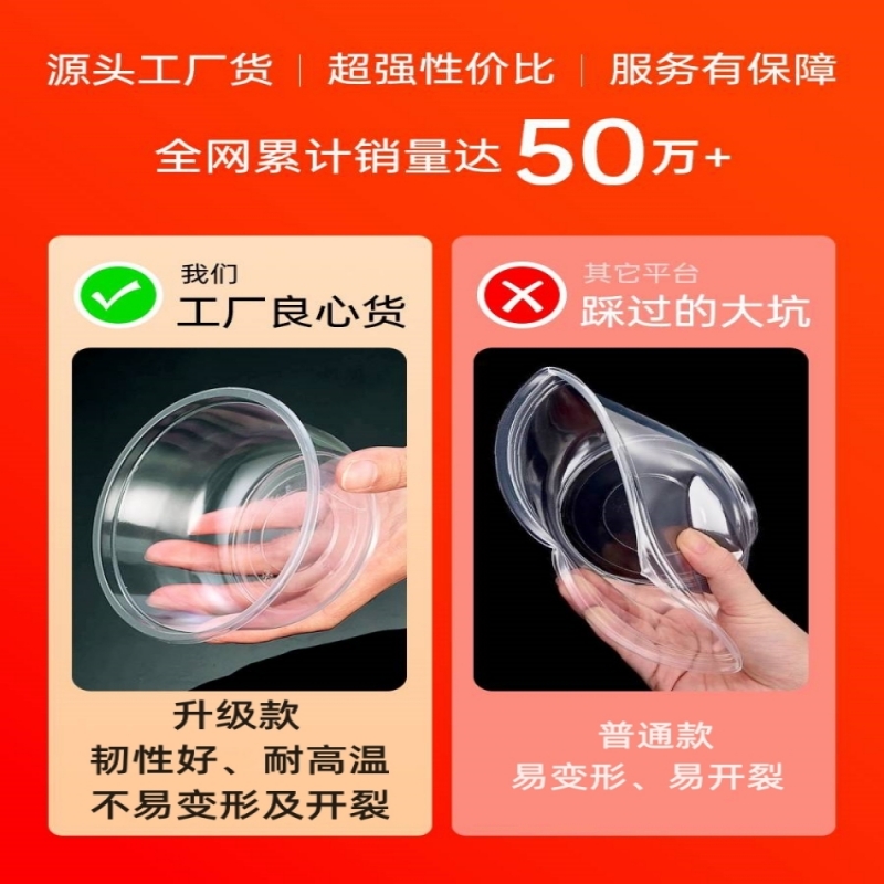 一次性碗塑料家用小碗套装圆形饭碗饭盒打包餐盒餐具冰粉商用碗筷