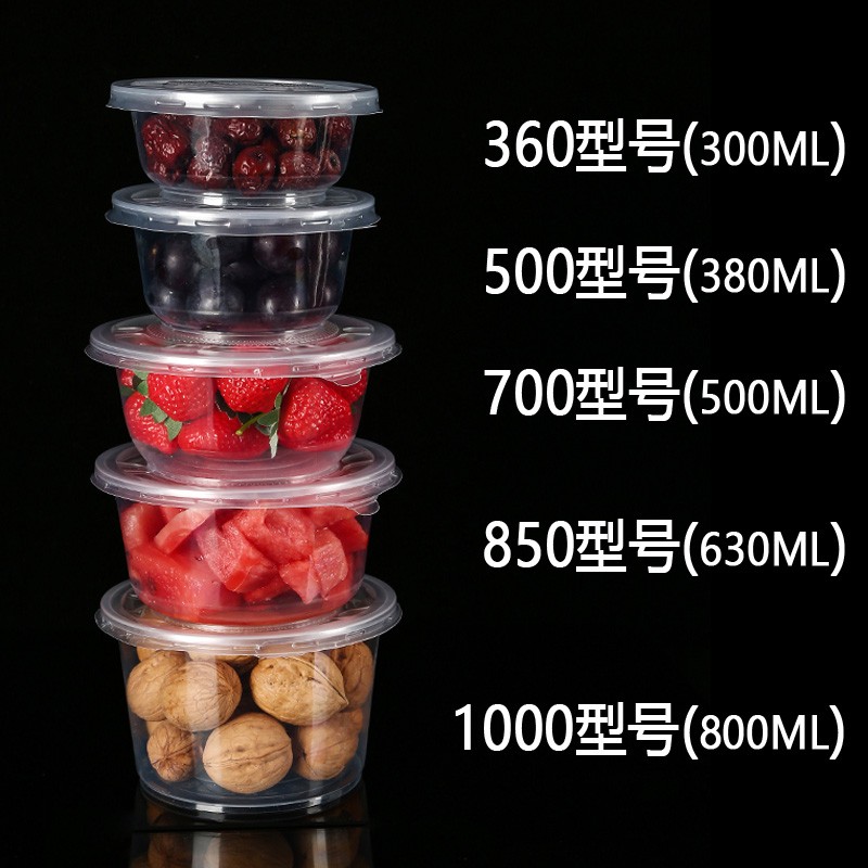 一次性碗塑料家用小碗套装圆形带盖饭盒打包餐盒餐具冰粉商用碗筷