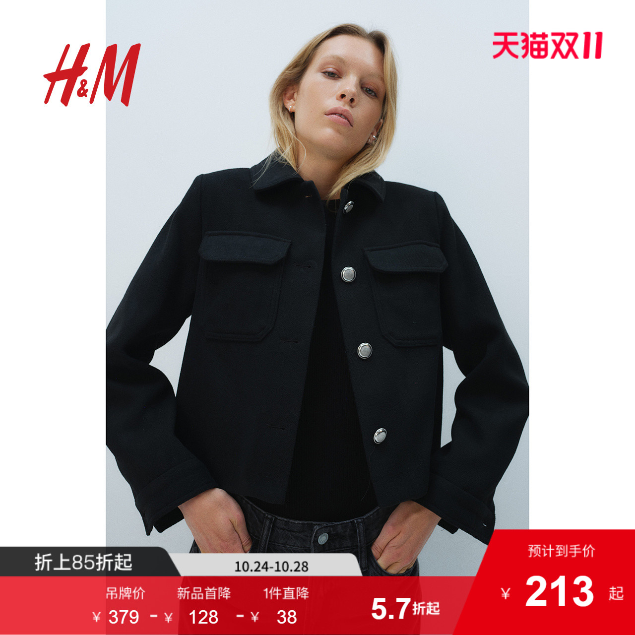 HM女装短外套秋季miu系穿搭上衣修身翻领法式长袖夹克开衫1254857