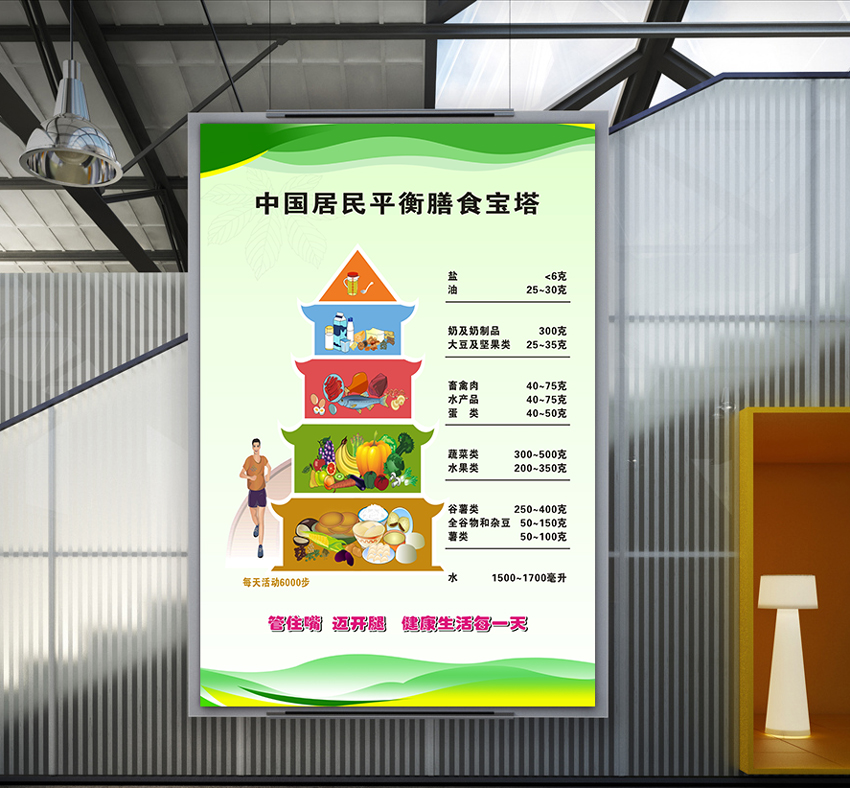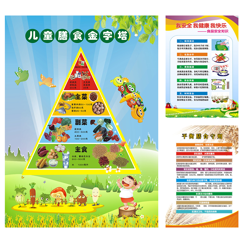 新款幼儿园儿童中国居民平衡膳食宝塔挂图食物金字塔卡路里热量表合理膳食墙贴营养结构图