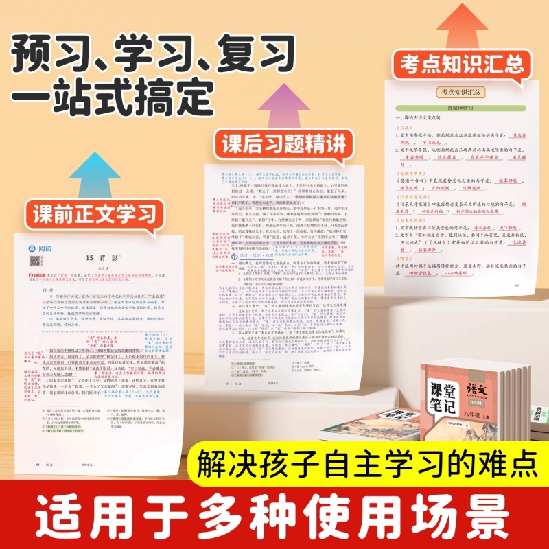 2025新版课堂笔记七年级八年级九年级上册下册语文数学英语新教材人教版北师大外研苏教版初一同步课本学霸笔记一本通初中预习