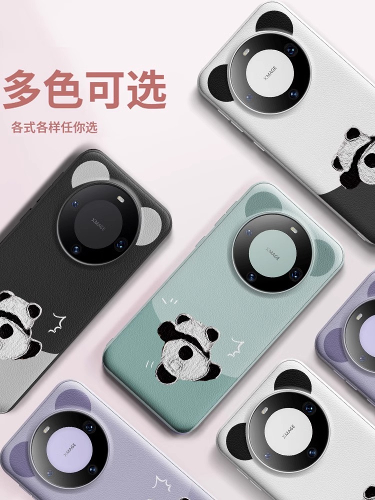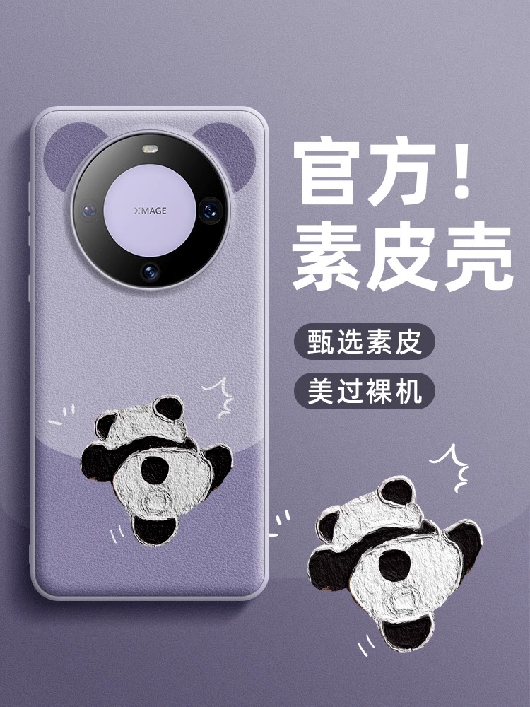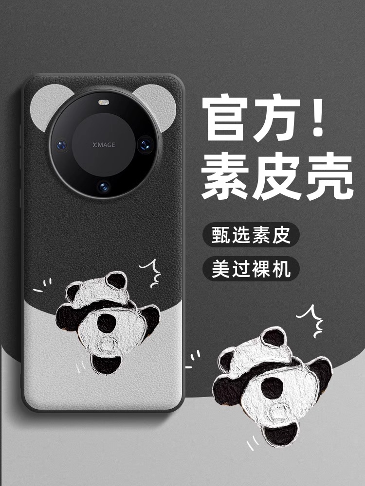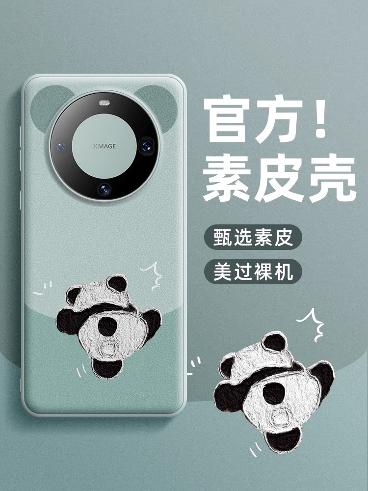 乐观适用华为mate60pro手机壳新款mate60素皮mata60吃惊熊猫mete50高级感40国潮mt60女款60pro+的套六零e pro