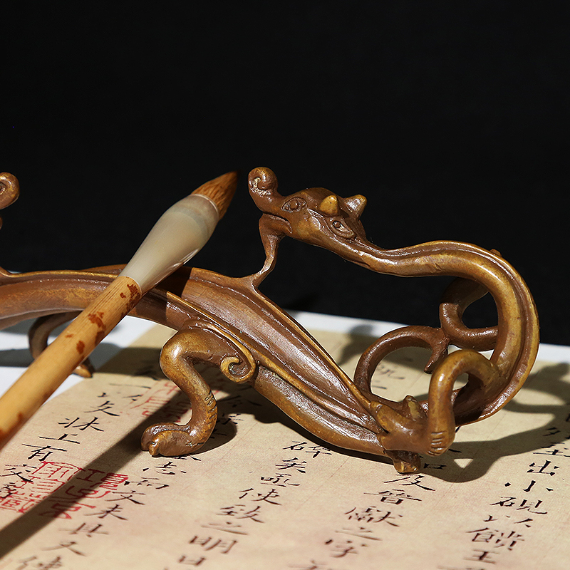 赋比兴 国家非遗 虬龙笔搁 笔架 传统失蜡法仿古铜器 高端青铜笔架笔搁 书法创意小摆件实心铜 文房四宝