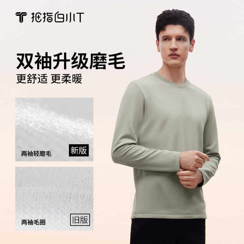 拇指白小T加绒加厚长袖t恤男女内搭上衣秋冬季新款保暖打底衫
