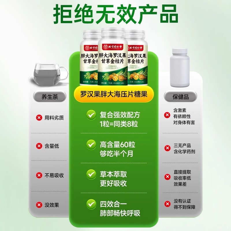 北京胖大海罗汉果甘草金桔片润喉糖咽咙止痰非清化肺咳护嗓