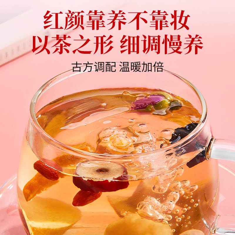 同仁堂红参阿胶玫瑰茶补气养血女性枸杞桂圆红枣调理养生茶元气茶
