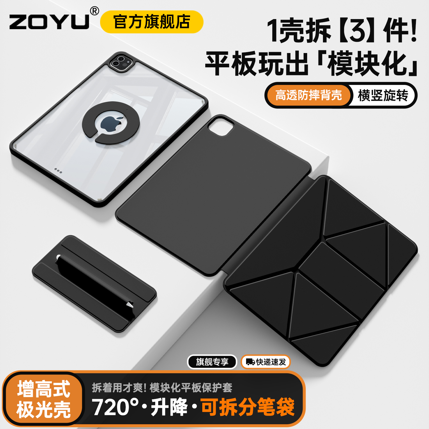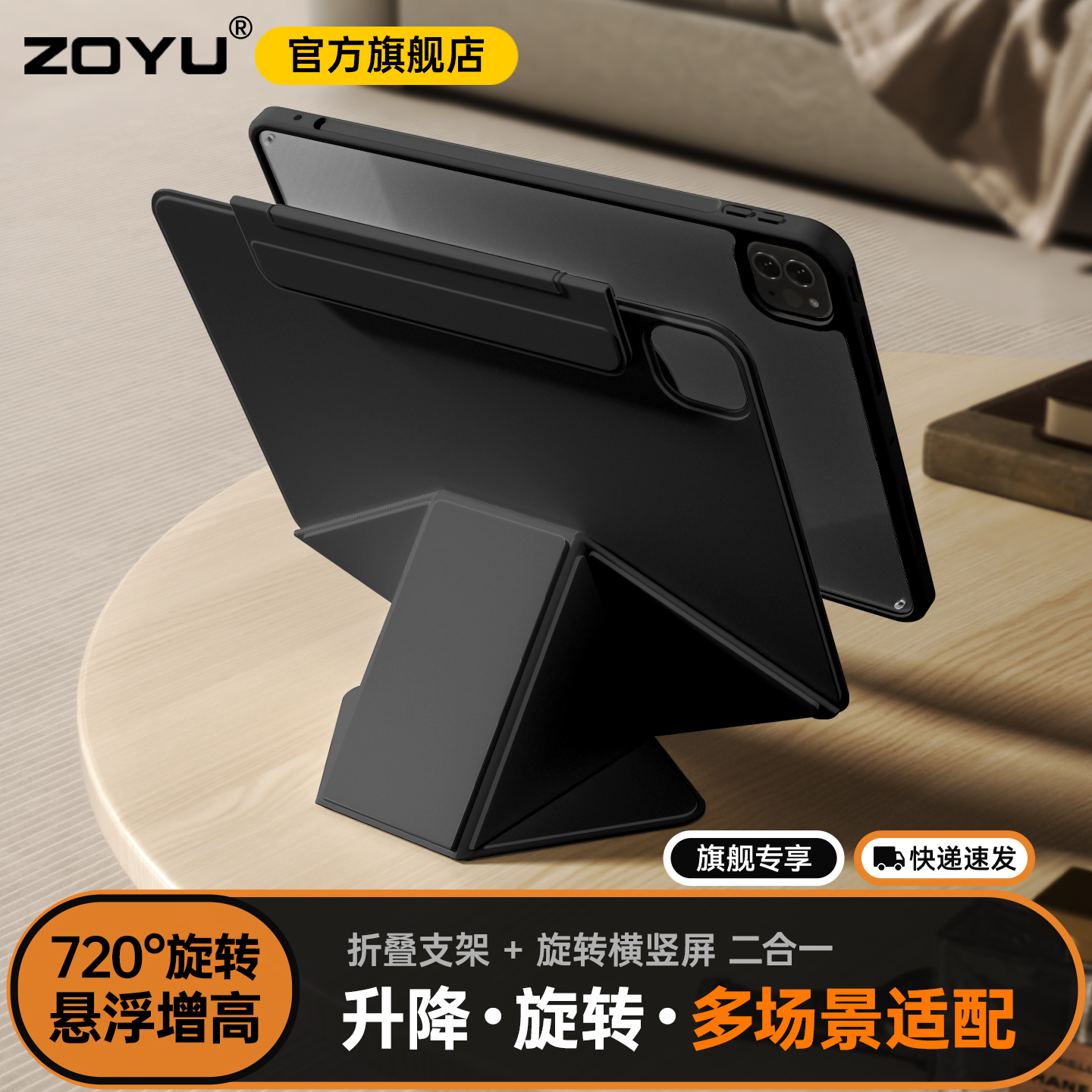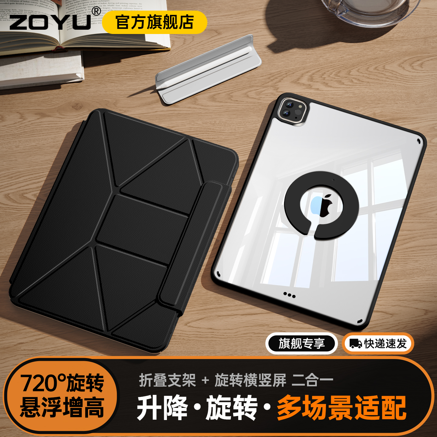ipadpro保护套air7悬浮增高支架720度旋转air65双面夹苹果iPad11保护壳10平板mini7磁吸拆卸13寸12.9透明防摔