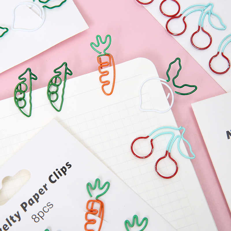 韩系卡通可爱胡萝书签学生创意文具8个装金属豌豆回形针套装跨境