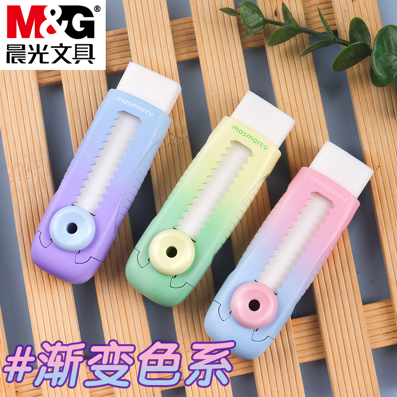 晨光渐变色小纽扣推动橡皮学生专用高颜值推动式橡皮擦少屑擦得干净可替换芯橡皮擦儿童幼儿园象皮擦像皮擦