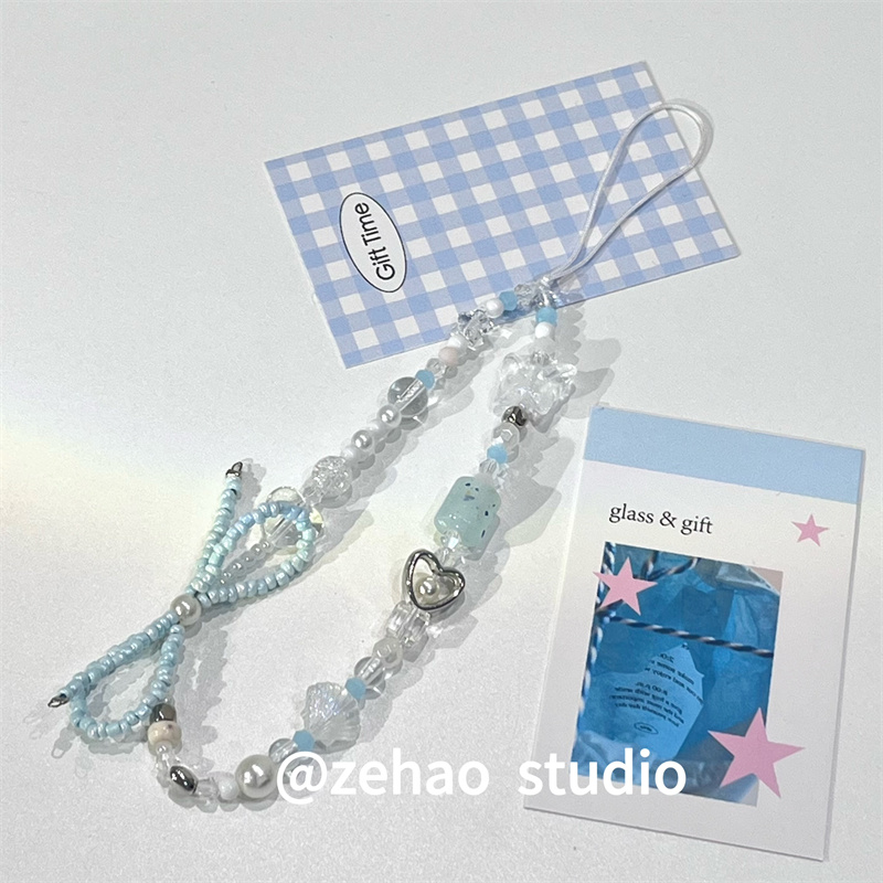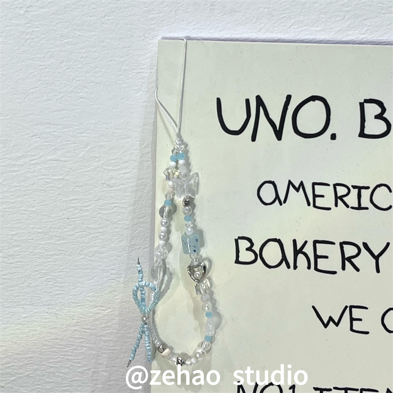 ins风自制海盐蓝百搭手机链手机挂件蝴蝶结高级ccd挂件相机挂件新