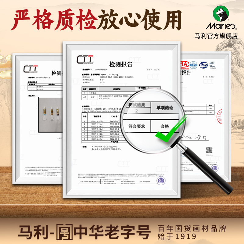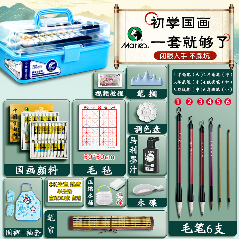 马利牌国画颜料初学者门套装用品工具全套水墨画工具套装中国画材料工笔画12色儿童用具山水基础初级国画门