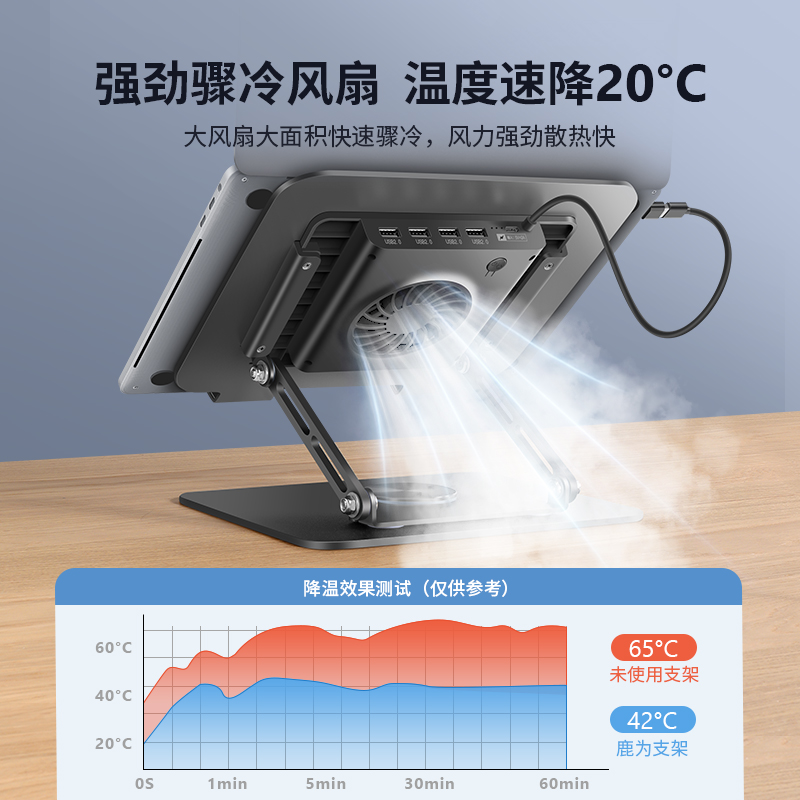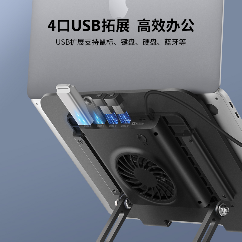 笔记本支架散热风扇360度旋转桌面金属可折叠电脑托悬空托架